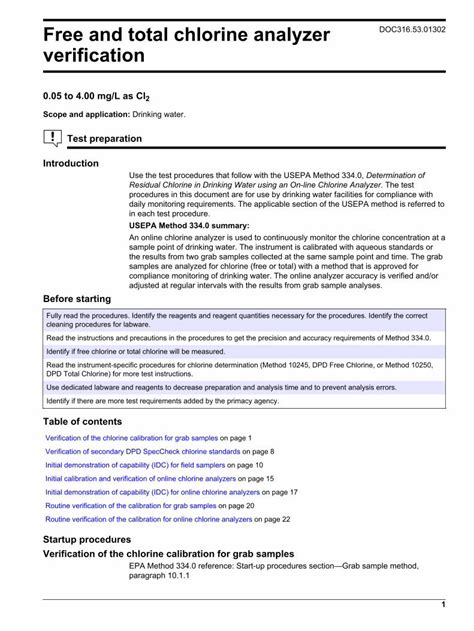Read Free And Total Chlorine Analyzer Verification PDF Kobo Open Library